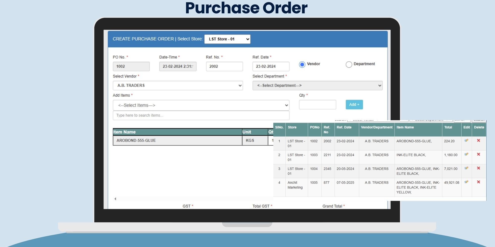 • Item Rate Master with Vendor-wise Pricing