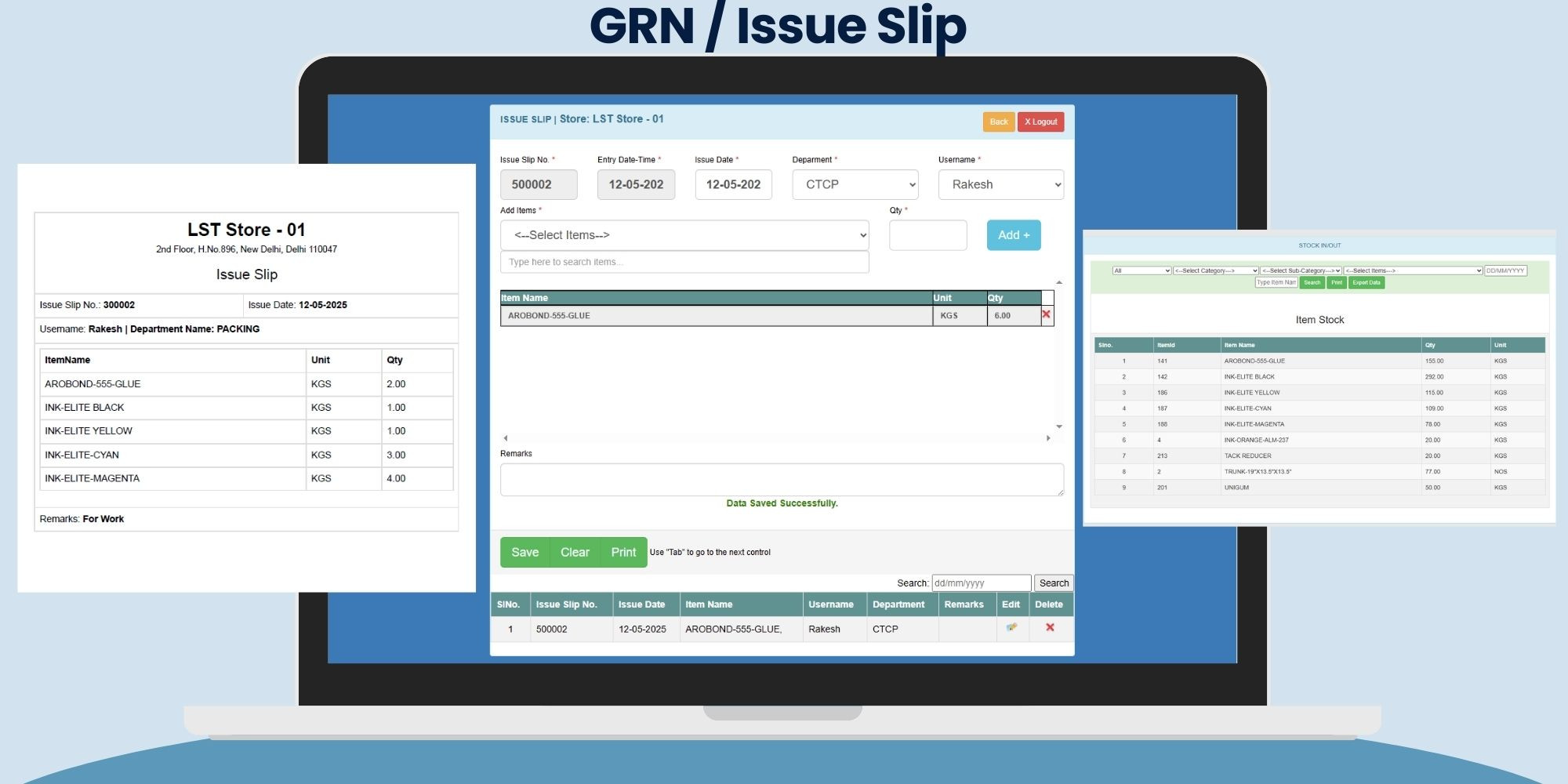 • Issue Slips & Department Stock Logs