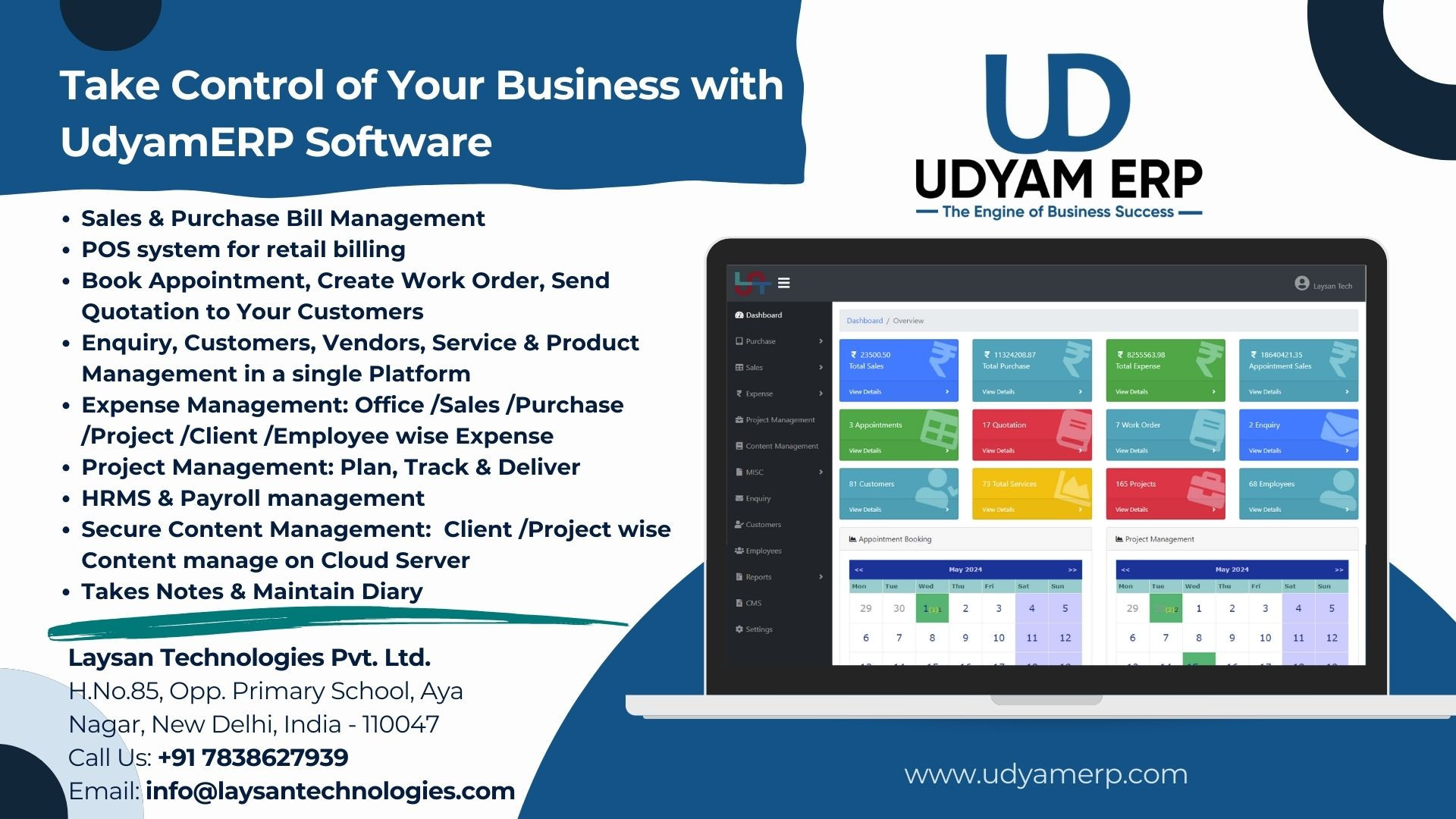 Simplify your service business and streamline operations with UdyamERP: GST Accounting, Billing, POS, HRMS, Payroll and Project Management Software.