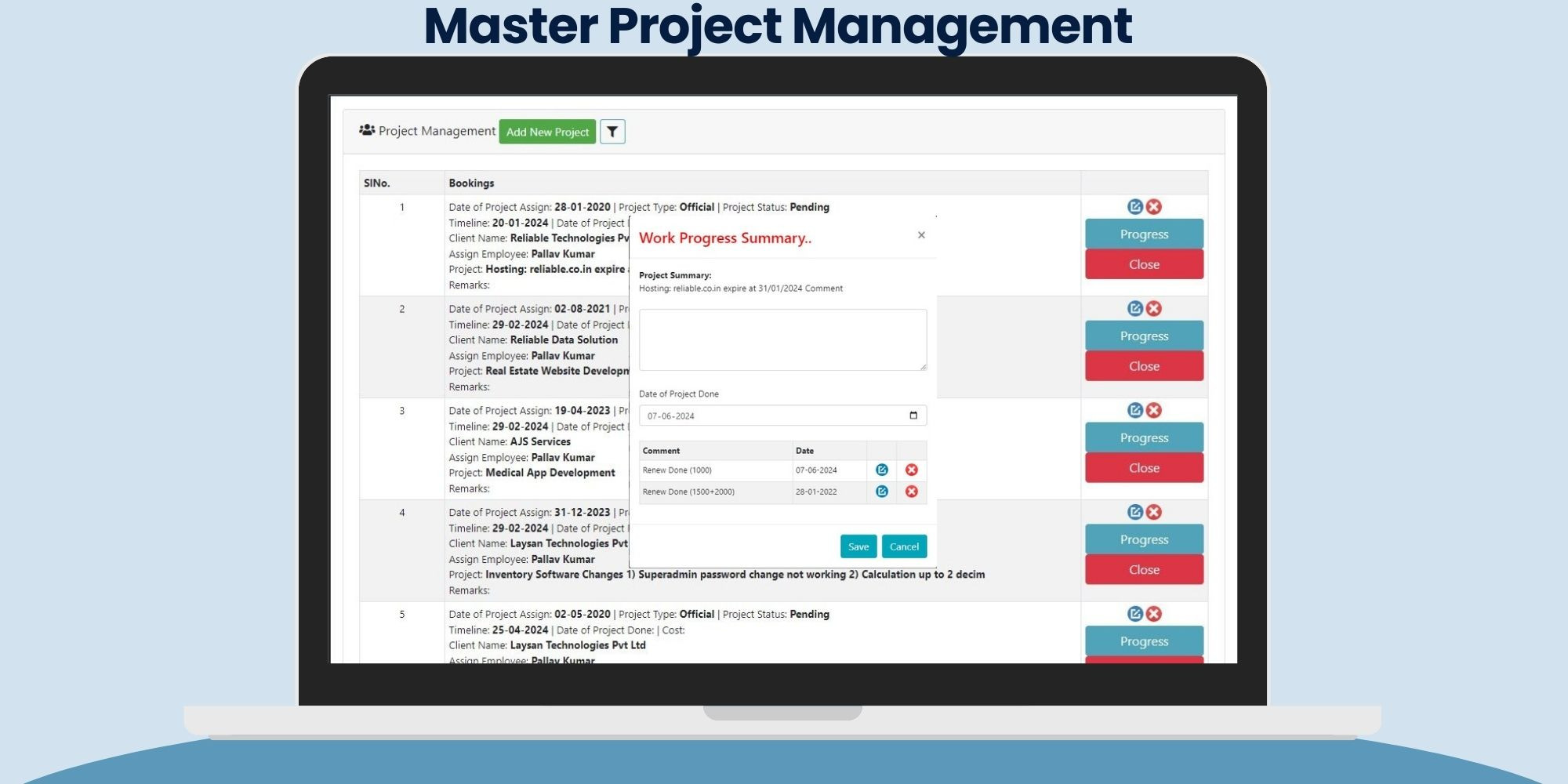 - Task Management: Assign project to team member, set deadlines, track progress, and monitor completion.