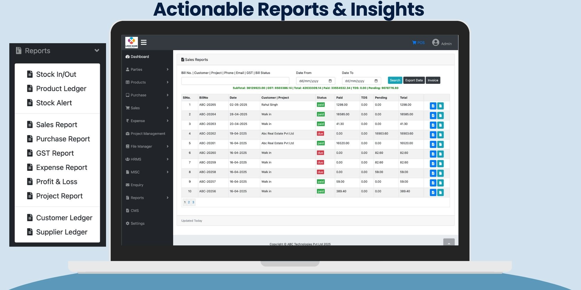 GST-Compliant Accounting & Billing: Easily manage invoices, taxes, and payments with built-in GST features.