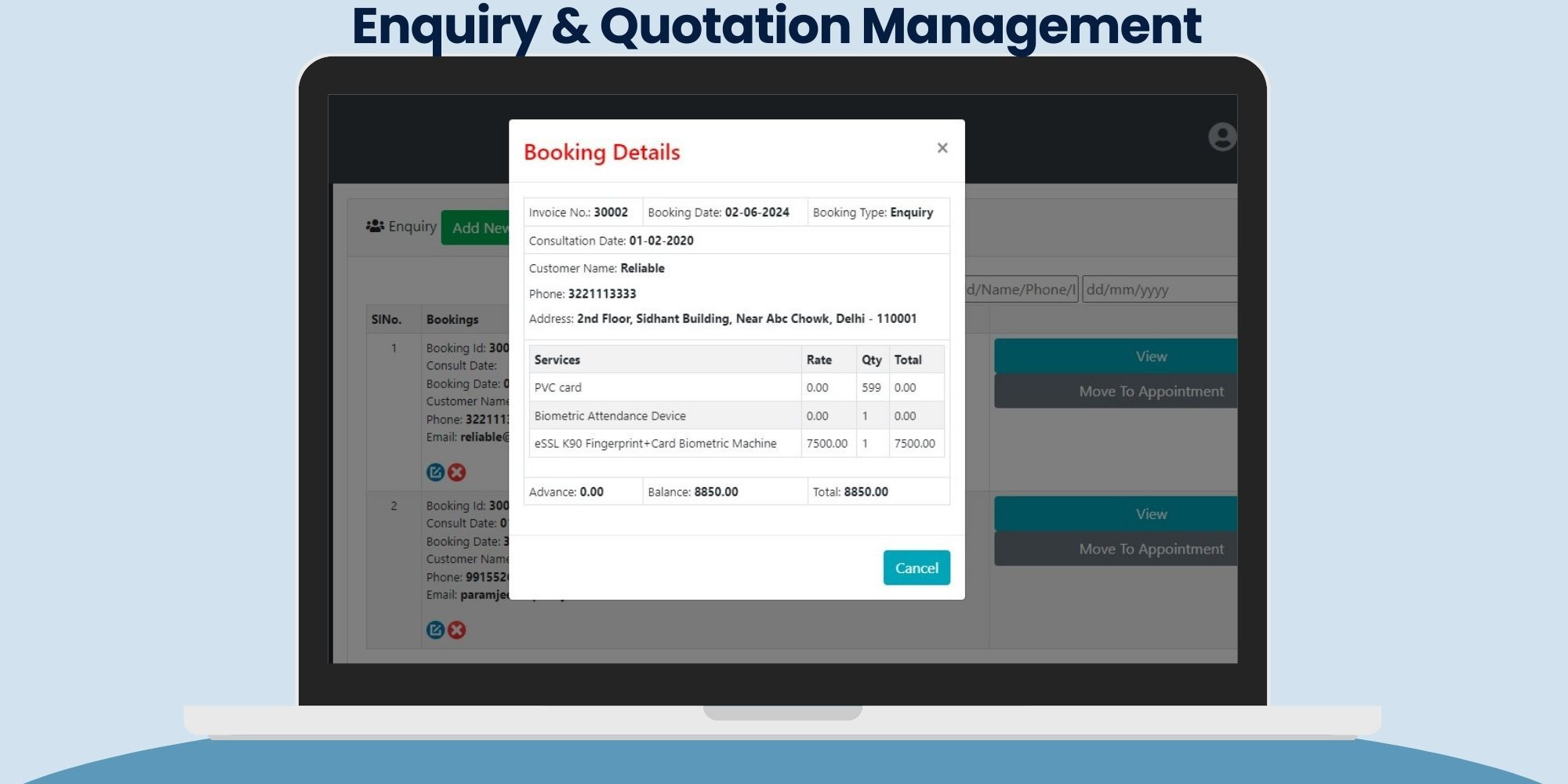 Quotations & Work Orders: Generate quotes, manage work orders, and enquiry seamlessly.