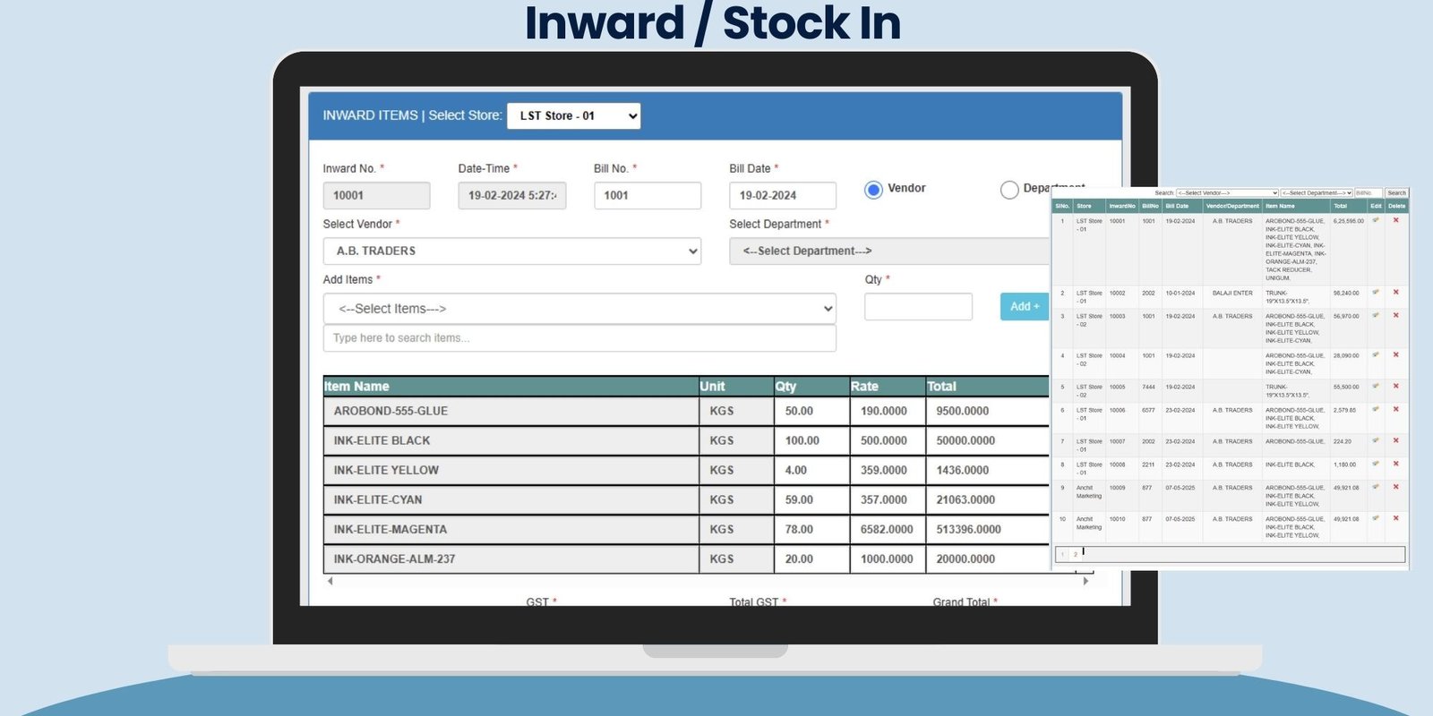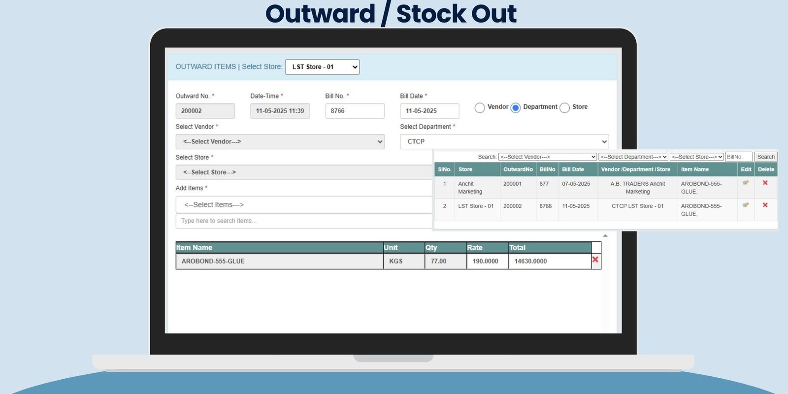 ✅ Inward & Outward Stock Management
