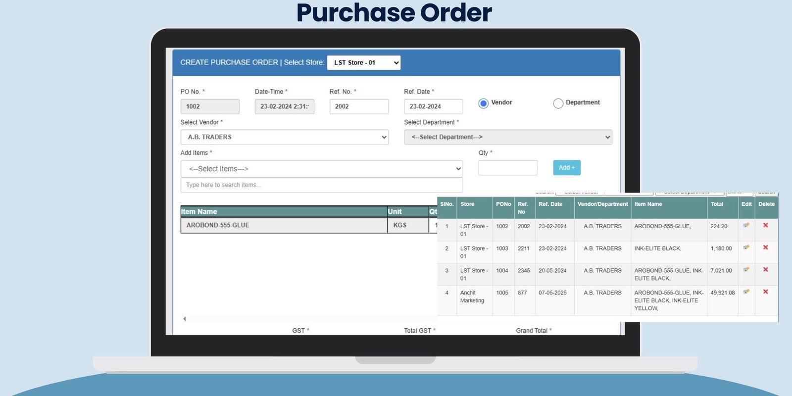 • Track Purchase from Vendors or Inter-Department Transfers