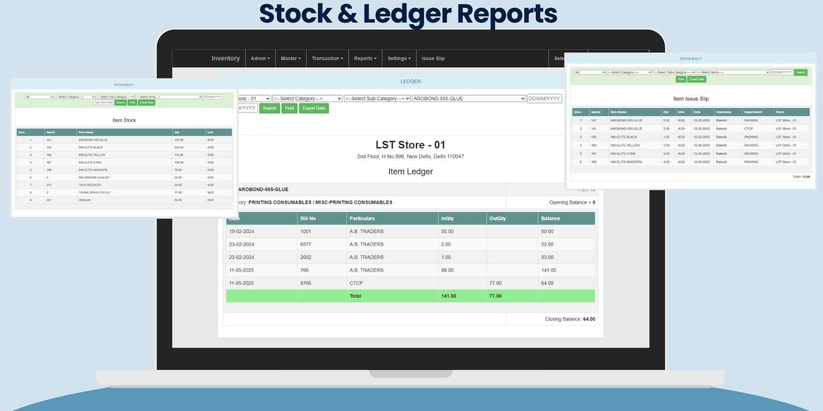 • Issue Slips & Department Stock Logs